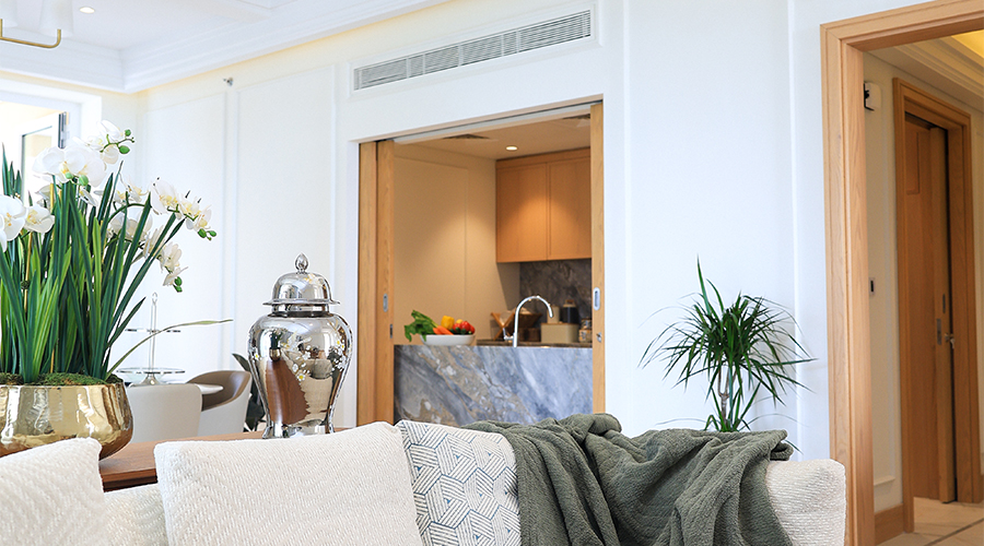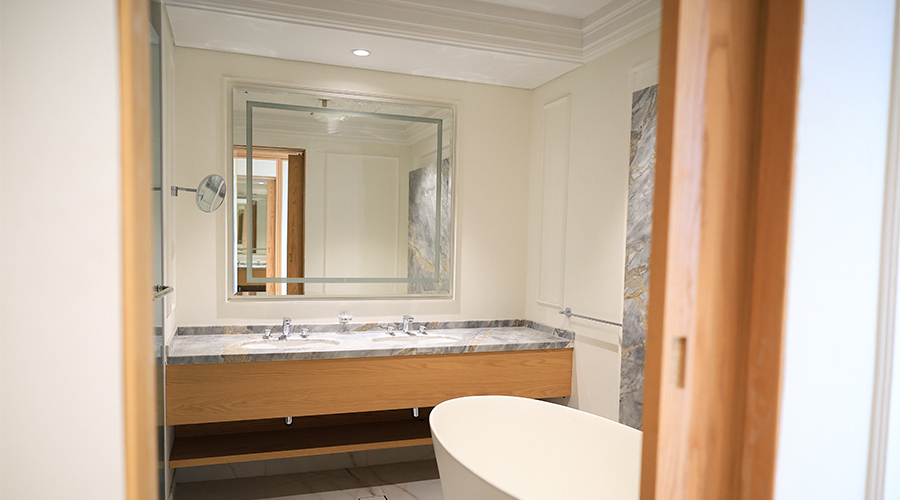 تصاميم رحبة، تفاصيل منتقاة بعناية، وشرفات فسيحة تطلّ على الخليج الغربي والكورنيش، حيث يلتقي البحر بالمدينة في مشهدٍ آسر.